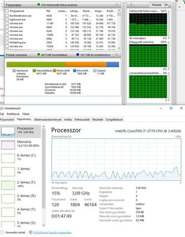 Sőt, panóban a 16 giga röhögve elfogy Win10 alatt. amit amúgy nem értek, mert kábé 70%-át zabálja be a LR vagy a PS, a többi látszólag apró, mégis 98-99%-os memóriahasználással küszködik a Win10.