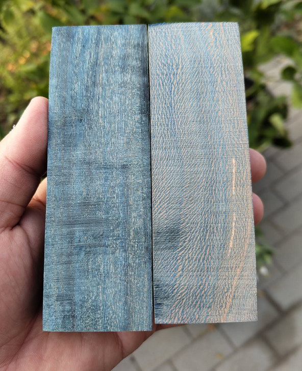 illetve vettem egy vákuum kamrát és elkezdtem fát stabilizálni nyélnek. Tettem kék pigmentet is bele
