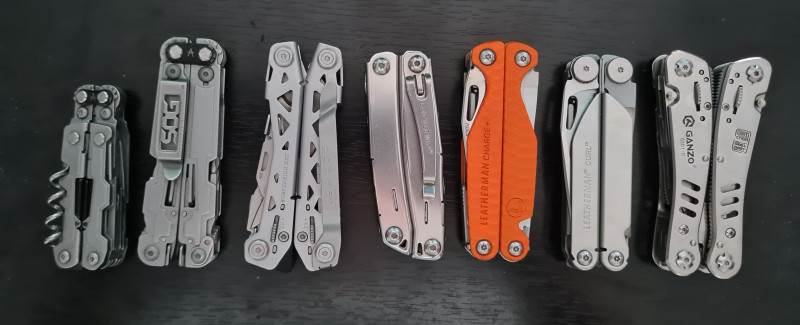 A Leatherman -tól előszedte a Wingmann -t később a Sidekick -et "ez már volt" kijelentéssel. (Ezek a belépő kategória a LM esetében.) Jött a Charge TTi meg a Wave. Ugyanazt mondta ezekre is. Nem emelte ki, hogy mi jár a Charge modellhez. Hogy titánium markolat, CPM S30V acél a penge "ez nem lehet" szerinte. Jár a bittartó a lapos, dupla bitekkel. Klipsz + O gyűrű. Gyémántpor a reszelőn (bár ez van a Wave esetében is. Ahogy a cserélhető fogazat a fogónál.) A LM egyébként 420Hc acélt használ.