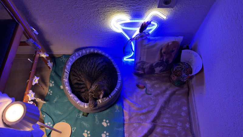Nekünk nem jól alakult a karácsony. Szegénykémnek az utóbbi hónapban napról-napra romlott az állapota, egyre inkább sántított, egyre bizonytalanabbul ment, 24-én már úgy kellett az alomba besegíteni, illetve a kis kuckójába is alig tudott bemenni. Utóbbi 1 hónapban tán 1-2x volt kint, amúgy az alom, kaja, víz, kis kuckója között keringet egy 2nm-es területen, a hálóban. Nézelődni tudott, mert ott van egy 3m széles üveg ajtó a kb erdő szerű kertre. Még 23-án vagy 8x evett, kedvence volt a tőkehal filé, abból is jól belakott. Aztán 24-én délelött azt vettük észre, h a száján kapkodja a levegőt, totál üveges szemmel néz, láthatóan már teljesen készen volt. Kellett vagy 1 óra, mire rászántuk magunkat, h elvigyük dokihoz elaltatni. Nagyon rendes volt a doki, nem akart rábeszélni semmire, de megállapította azt, amit tudtunk, h nyilván víz van a tüdőben, ami gondolom attól van, h kezdett összeomlani a keringése. Úgyhogy elaltattuk, utána mondta, h szerinte jól döntöttük, h nem próbáltuk még ilyen-olyan rossz állapotban húzni az időt, a szenvedést.