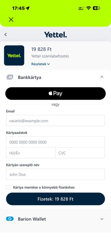 Yettel oldalán miért nem lehet befizetni a számlát Apple Pay -el?