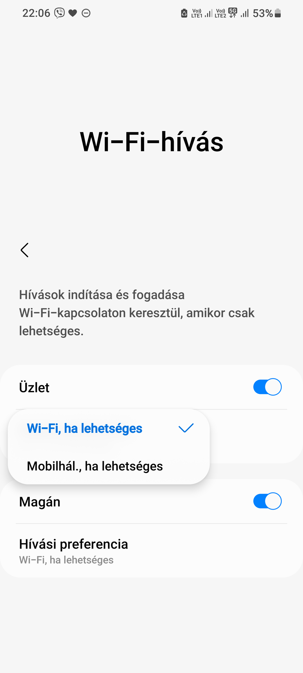 Samsung A72. A beállításoknál megjent a WIFI hívás.