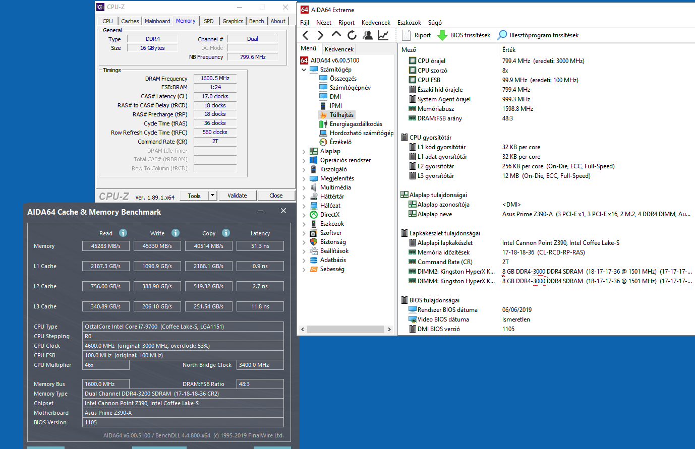 A leírás szerint a CPUZ-nál elvileg 3200MHz a sebesség, de az AIDA-nál meg, ha jól értelmezem csak 3000 MHz, ráadásul az ott feltüntetett időzítési adatok nincsenek köszönő viszonyban a gyári értékekkel.