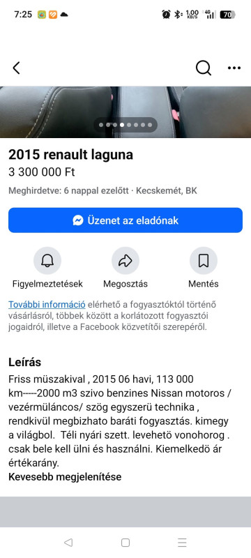 Illetve mégegy dolog: 140 ezernél a váltógomb, ülés állapota, hát...bár szétlehet nyúzni, de akkor üti a fenti "vigyáztak rá" gondolatmenetemet.
