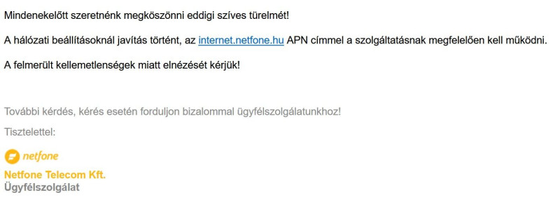 Láttam, hogy sok a panasz egyelőre a voda hálózatot használó netfone os apn el.