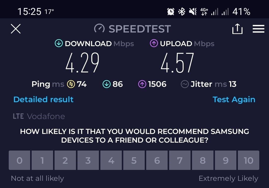 De ez is relativ. Telekom 1 csikkal, ugyanakkora zajszinttel lakasbol jobban teljesitett 4G-n, mint a Netfone kisebb zajszinttel.
