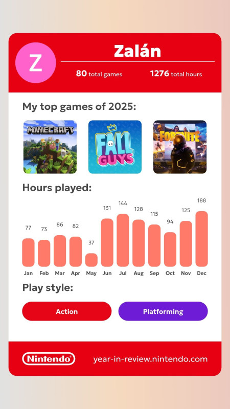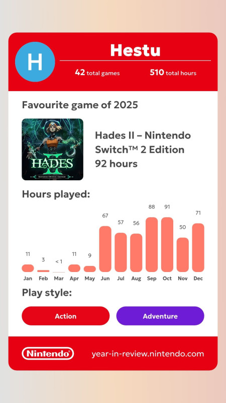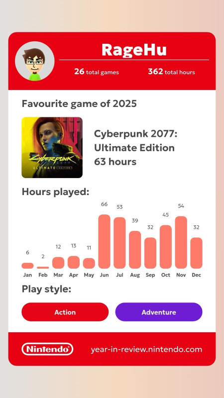 Your personalised Year in Review is here! Take a look back at your 2025 with Nintendo Switch and Nintendo Switch 2, pick your favourite game and more! #NintendoSwitch2025