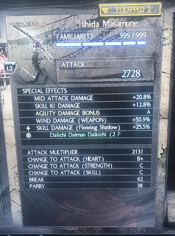 Kusarigamaba beletettem az attak from behind ot így inkább hátulról vagyok jó de tiger Run nal elég jókat tudok sebezni kb 25000 dmg