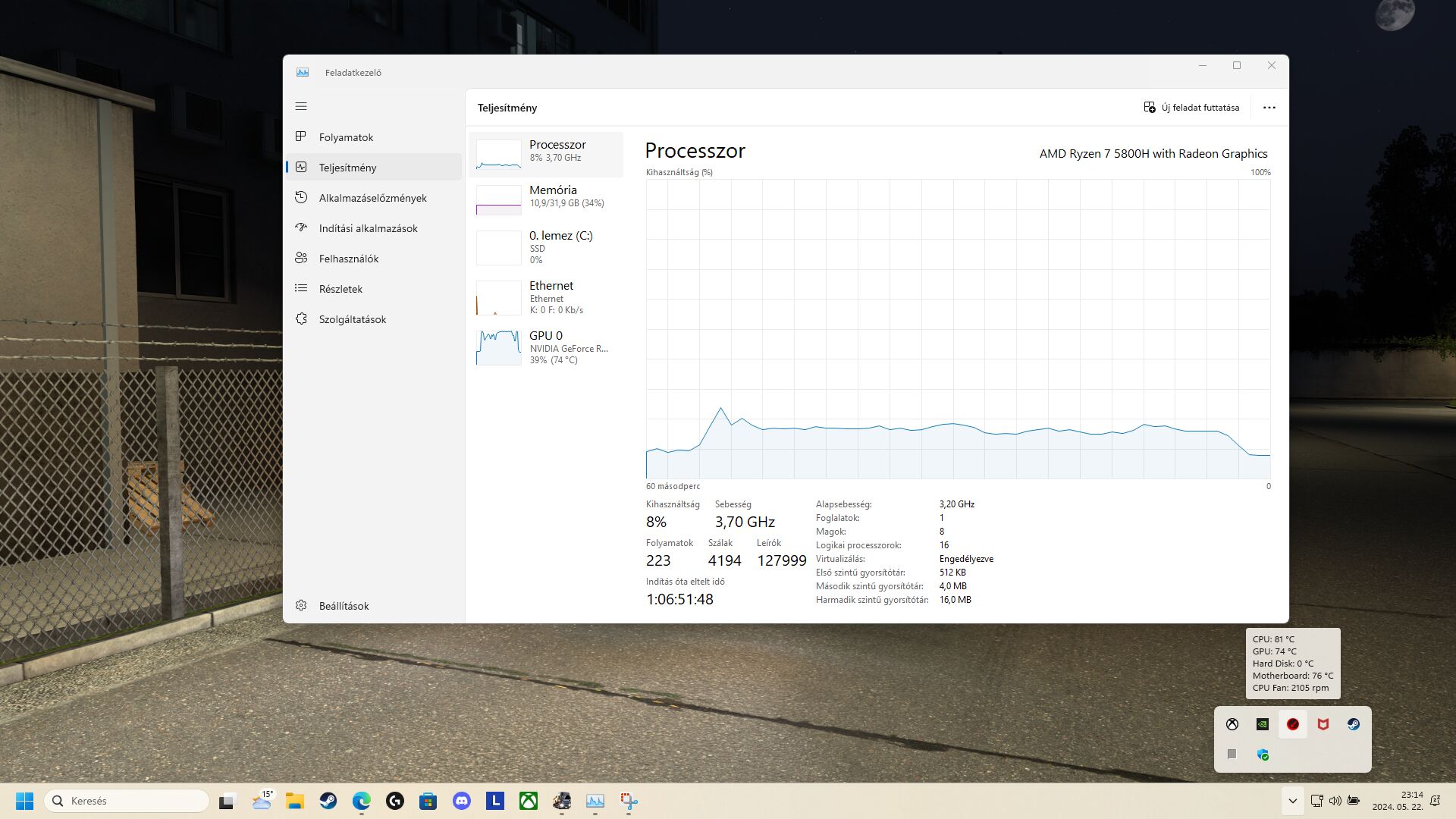 . Ami az eszét illeti az egy I5 8gen proci, az idegrendszerét 8gb DDr4 RAM adja, a méhe pedig egy 256 NV2 SSD. A videókártyája tipusára pontosan nem emlékszem, de csak jó egy windóznak