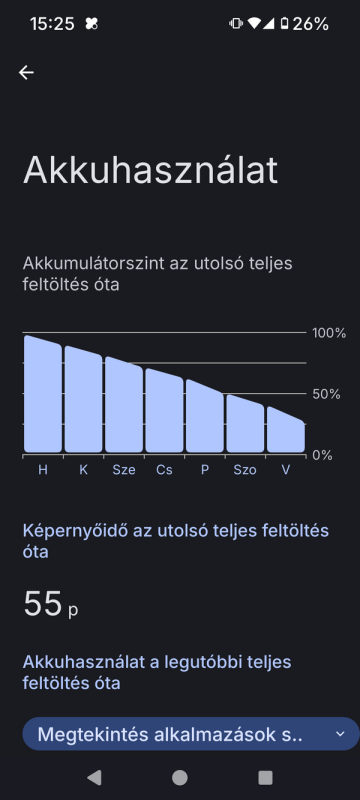 Átlagos használattal 2 nap alatt 4 óra kijelzőidő? Megdöbbentő, ha így van. A Nothing Phone 2 4700-as akkuval tud WiFi-n legalább 9 órát - ha beleszámolok egy éjszakát, akkor is. Az egyik legjobban optimalizált telefon. Rendben, az NP2 le tud menni 1 Hz-re, de akkor is...