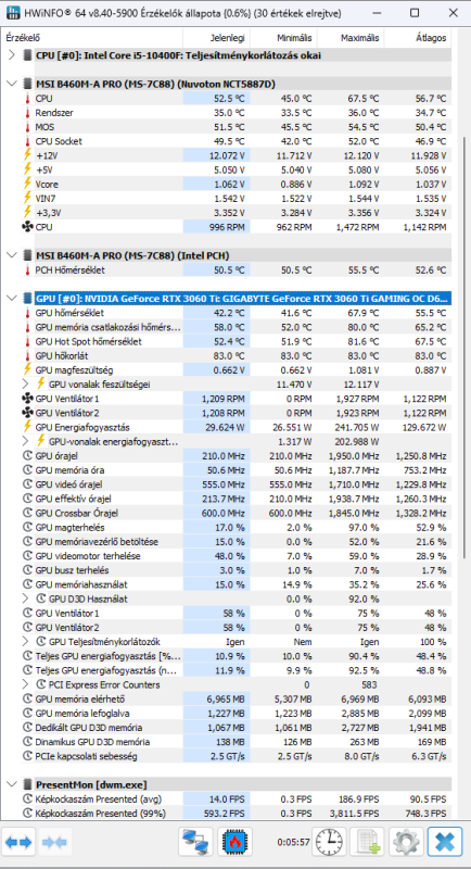 mert akkor nem így működne. Gyanakszunk lassan a processzorra, vagy a ramokra, de a mai nap folyamán egy másik konfiggal ki tudják próbálni. Lehetséges hogy ennyire bottleneck a 10400F a 3060Ti mellé? A konfig amúgy a következő: