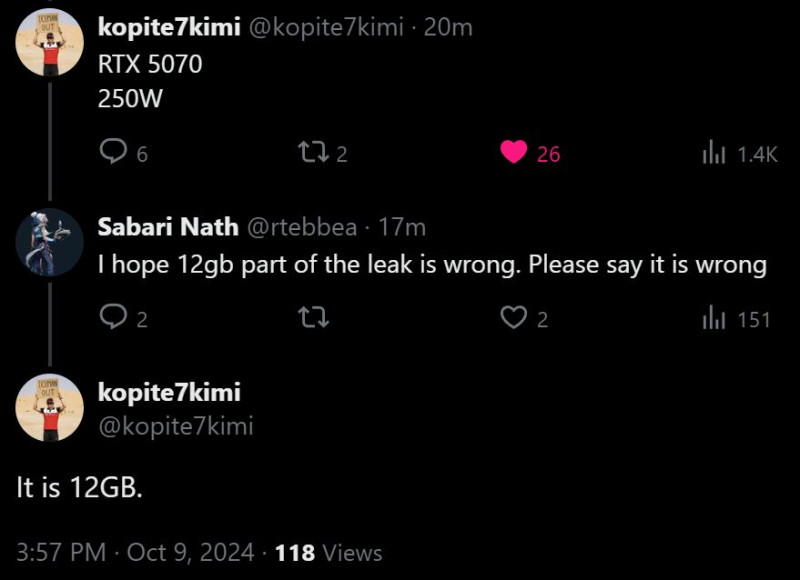 Kopite szerint Úgy néz ki bemutatják az 5070 kártyát is. 12 GB GDDR7...