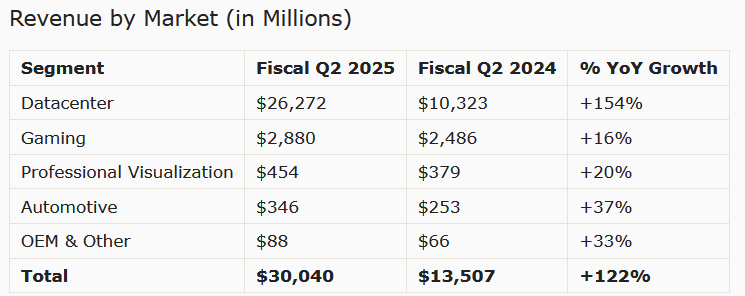 De azért félelmetes hogy 9x bevételük volt data center eladásokból gaminghez képest, ami tavaly ilyenkor még csak 4x volt...