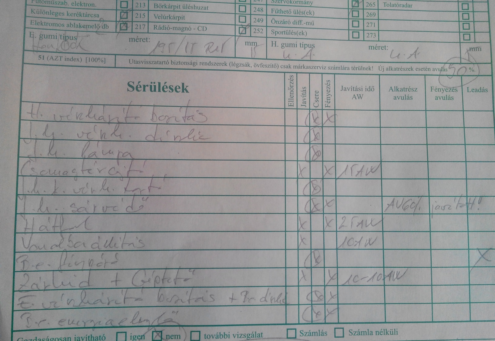 Az eleje nem vészes, hátul meg mondjuk egy lámpa, egy jobb hátsó elem és egy lökhárító kéne, ez azért így ránézésre párszázból megvan. Az elejével együtt mondjuk 450-et mondanék rá elsőre.