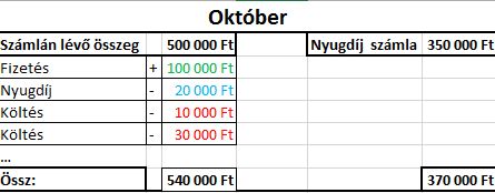 -20.000 a nyugdíj, ezt levonod, de egyúttal összegzed is külön a másik számládon