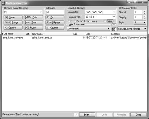 Most így néznek ki a file-nevek, hogy C_B_A_D_No, és ezt kéne belőle csinálni, hogy A_B_C_D_No.Ez hogy a legegyszerűbb? van több ezer file, és köynvtáranként mondjuk 100, és változóak a nevek. Meg tudom csinálni félig manuálisan Total commanderrel, de valami automatizáltabb megoldás kéne... Esetleg valakinek ötlet?