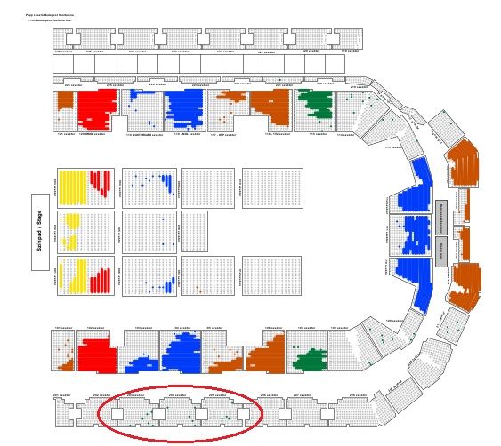 A Sportaréna legfelső karéján lévő bekarikázott szórványos helyek jobbak vajon, vagy a nagy tömegben lévő zöld helyek? [kép] -