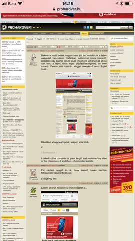 Nekem a mobil nézet nagyon nem jött be, mobilon is a teljes weboldalt használom. Safariban tudtommal nincs blokkoló, általában egy banner látszik csak (most épp ugyanez az a8-as van fent, a fejléc fölött teljes oldalszélességben), de nem zavaró. Persze álló kijelzőn eléggé elenyésző részt foglal csak...