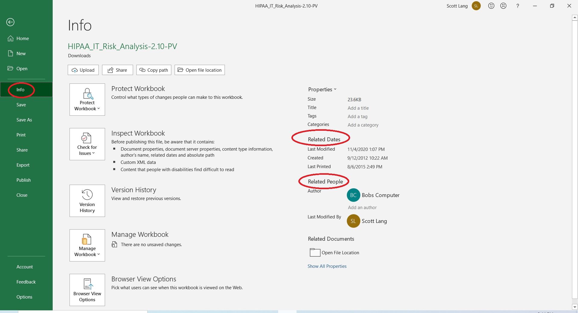 Ez Office 365 excel. Megnyitod a kerdeses fajt, file menu es info.