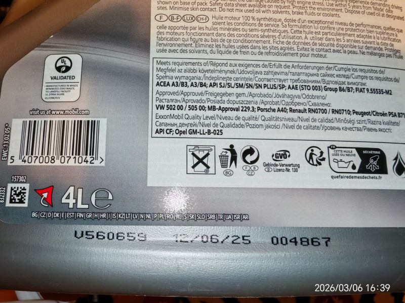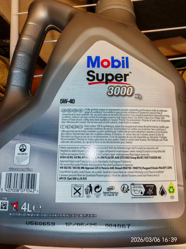 Kollégámnak vettem ma olajat a Zsu.hu-ba, ha valakit érdekel milyen adatok vannak a mostani Mobil címkén. Szép hologramos.