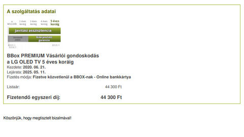 Direkt "garancia" kiterjesztést akartam rá venni és LG-t kérdezve ők is ezt a BusinessBox-t ajánlották bátran.