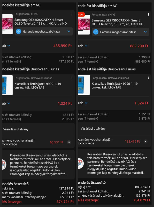 Ez így nem rossz én is így vettem az S95C-t amit vissza is kellett küldenem. Ha valaki itt veszi a TV-t és esetleg el kell állni a vásárlástól azzal számoljon, hogy másfél hónap mire lezajlik az egész folyamat. Sok telefonálás, üzletbe bemenni meg ilyenek mert a TV-t nem viheted be, küldik érte a futárt amiről nem értesítenek hanem hív a futár mindjárt ott vagyok a TV-ért.