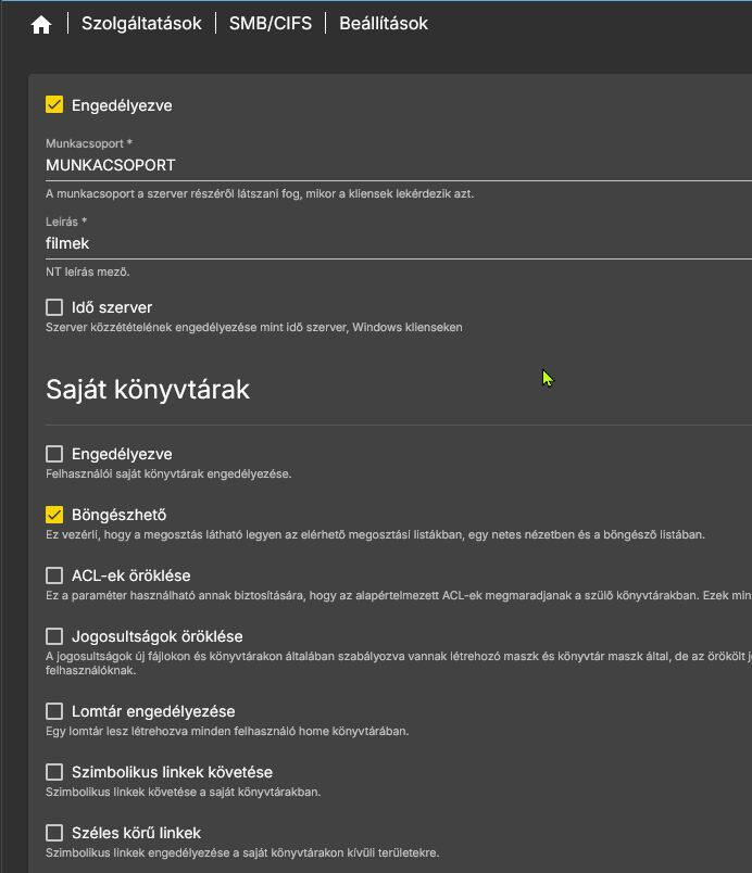 a hugom gépe ill az enyém wifin édesapám gépe lan kapcsolaton ami a szolgáltató által adott router egyik portjáról switchen keresztül csatlakozik még pár a nappaliban lévő eszközzel együtt(tv applebox, voda stbox, egy linksys wifi jel erősítő) maga az omv gép a konyhában ugyanígy switchen keresztül- ott is egy linksys wifi jelszóró, tv voda stbox - az én gépem meg wifin ahogy a hugomé is. A nappali illetve a hugom gépe hibátlanul látja a megosztott mappát én meg az admin felületet böngészőn keresztül.