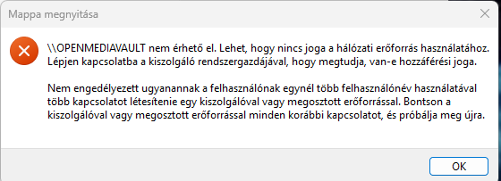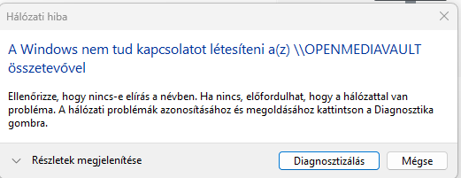 Az első egy windows hibaüzenet, akkor szokott ilyet dobni, mikor nem látja a megosztást smb/cifs. Néha segít az újraindítás, a win, vagy az openmediavault server.