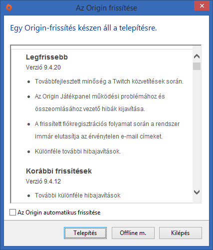 Végülis úgy látom, hogy csinált valamit, mert a játék mappája 12 GB. De szerintem többnek kellene lennie, mert csak a telepítője nagyobb volt. Kirakott egy ikont az asztalra, de nem indul a játék, mert szerinte nincs net. A letöltött fájlt meg eltüntette. Most olvastam, hogy állítólag egyes Origines játékokat offline módban is lehet játszani, majd megpróbálom. Ha nincs más, leszedem és újra nekifutok.Esetleg tudja valaki, hogy a