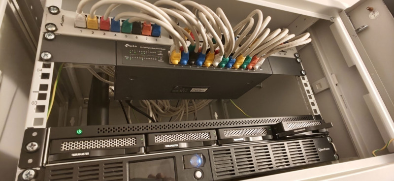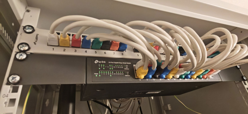 De a képen látható setupot irigylem. Én is nagyon szeretnék valami ilyesmi, patch paneles esztétikus elrendezést a mostani helyett, mert egy kupac kábelhalom a beépített szekrény polca perpill. Ott van a "központ". -