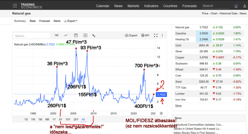 Nem az itteni témaként, sem hőbörgni nem akarok, de itt ez az ábra (oké, natural gas, de ekvivalens a földgázzal). Nem kicsit érdekes... (2025. január 2-i állpot, a feliratoknál a 700Ft valójában 747Ft, csak elírtam)