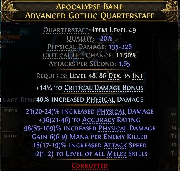 Nekem most ezt dobta fel a max 5 exás keresésre, phys dmg szerint sorba rendezve. Én a másodikat választanám, a corrupted, de plusz fire dmg-es, plusz crites darabot