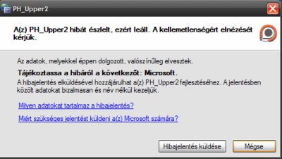 Sajnos ugyan az a hibajelenség. Tölt, tölt, tölt aztán "A program leállt, elnézését kérjük" ... stb. A sablon XP szöveg.