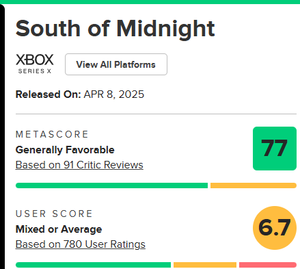 A sztori, a zene, a játék, a történetmesélés, és kb minden. De ennek a South of Midnightnak nem is ilyen nagyágyúkkal kell versenyeznie, de csak ha feleannyira lett volna jó, mint mondjuk a Psychonauts 2, én már attól is boldog lettem volna.