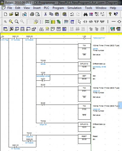 Ráadásul gondold el, hogy ez a gyilok két másik 24V DC rendszerrel működött együtt egy kisebb szekrényrevaló relé közvetítésével. Mindez csak azért, mert az eredeti relés vezérlésből megmaradt kb 20 db 230V-os mágnesszelep tekercse! Ilyen az ha egy gépészember a nagyfőnök és azt hiszi hogy mindenhez ért. A TSX mellett volt elhelyezve 30-40 db időrelé, hogy "finomítani" lehessen a vezérlést számítógép nélkül is!