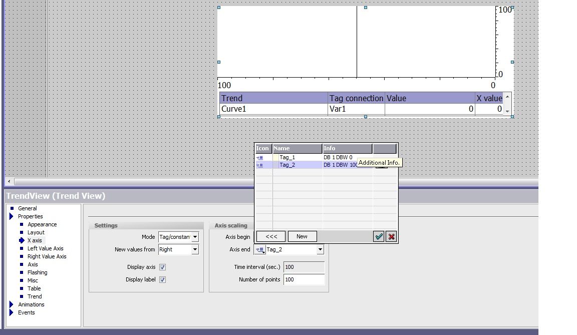 írok egy függvényt, (aminek a változóit lehet a hmi-ről módosítani) a kétváltozós függvény egyik változóját folyamatosan növelve lefuttatom és a számolt értéket és elmentem egy datablock-ba egyenként.Ehhez kellene a grafikon, hogy a diszkrét adatokat egymás mellett megjelenítve egy értelmezhető görbét kapjak. Tehát ha jól működik a rendszer az időtől függetlennek kell lennie, de úgy látom hogy a Trend View görbék x tengelye időhöz kötött