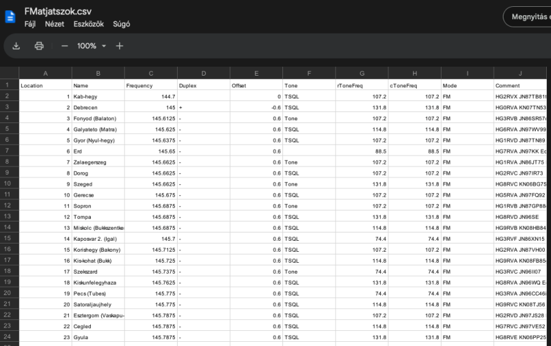 Igen, köszi! Ez egyértelműen Excell bug/feature. A csv-ben nincsenek dátumok. Pl. a 6- sorban, az érdi átjátszó 88.5Hz-ét '88. 5. hónapnak értelmezi, mert illik rá, és ő úgyis jobban tudja. (Üdv a szép új világban).