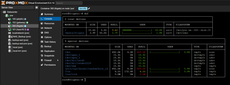 Így, hogy a rendszer kapta meg az Nvme p41-et, és a PM883-ra csak a Frigate-é így senki sem panaszkodik, hogy kevés a hely. Bár egyik sem Enterprise SSD, de egy darabig béke van.