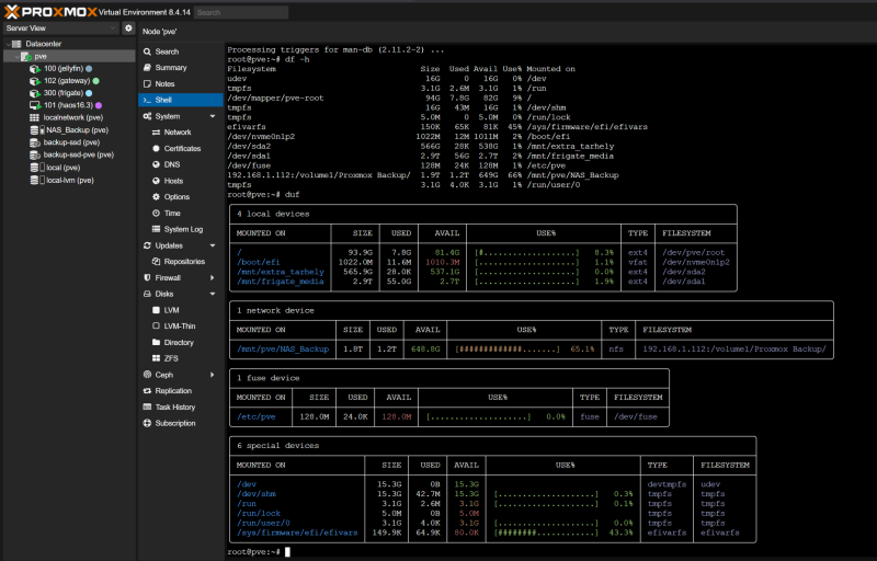 - 2x1.92T SSD: ZFS RAID0 (stripe)Ezenkivul van egy masik PVE gep is, ami 70 wattot eszik, Xeon E-2274G, ez ilyen backup gep.
