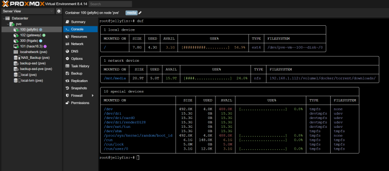 2. bind mount az LXC-nek: erre keress itt rá, nem tudom mik a lehetőségeid, mi a hardver. Ha van helyed, akkor csinálsz nagy LXC-t (nem javaslom, sokáig tarthat a mentése) és azt osztod meg samba-val.