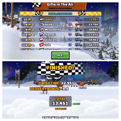 Elsőre tetszik. Bár nem egyszerű gyorsnak lenni. Ugyanis be kell segíteni TÉLAPÓNAK. Kapsz egy utánfutót 20 csomaggal, amit el kéne vinni a célig. Ahányat el tudsz vinni annyiszor FÉL másodperc levonódik az idődből. Tehát érdemes sietni is, mivel ha lassan megyünk túl nagy lesz a hátrány. Elég sok az ugrálós rész, hogy jó sok csomag tudjon kipotyogni.
