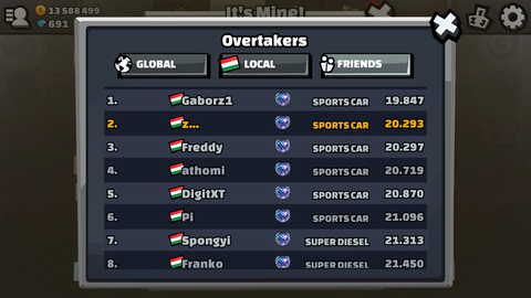 Már csak azért is bugos, mert pl. Overtakers pályán voltam 47. magyar, 20.870