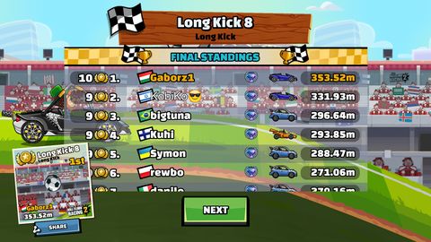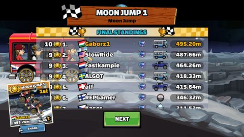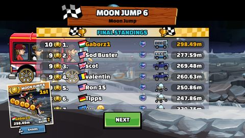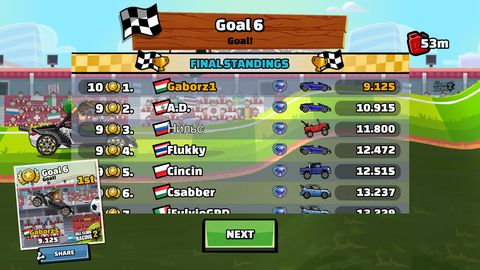Én általában a Rally carral nyomulok, Fuel boost (lvl2) + OC turbo (lvl3) + Hólánc (lvl11) / Coinboost (lvl2) trióval támogatva. -