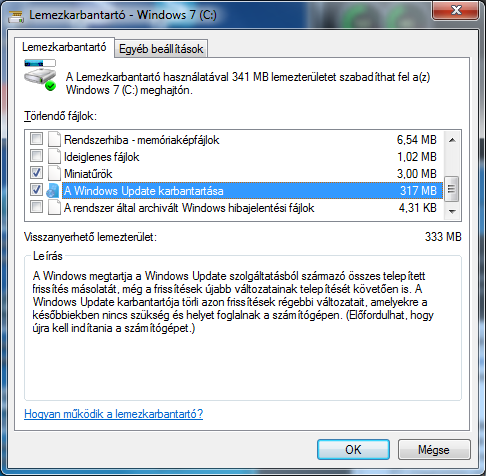 Telepítés után a lemezkarbantartó futtatásával véglegesíthetjük és több mint 300 MB helyet szabadíthatunk fel