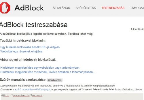 Hol lehet a ph lapcsaládot likvidálni az adblockból?