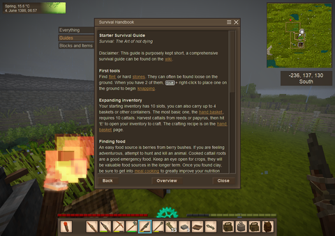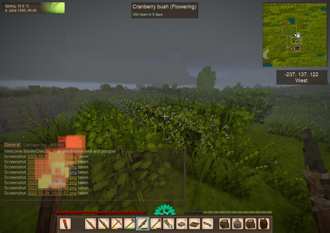 Szerveren majd lesz idővisszaállítás márciusra (de csak most egyszer) mert már augusztus van és nem lenne jó ha az ősz tél miatt halnának éhen az új játékosok. Én már egy hete játszok azért van már augusztus. Telek kemények, kezdőként instant halál cuccok/kaja nélkül -10 fokban kezdeni. Nyáron a kaja romlik meg elöbb, összel meg kevesebbet teremnek a bokrok. Gondoltam rá hogy spawnál menedékházat építek, pár nagyon kezdetleges szerszámmal.