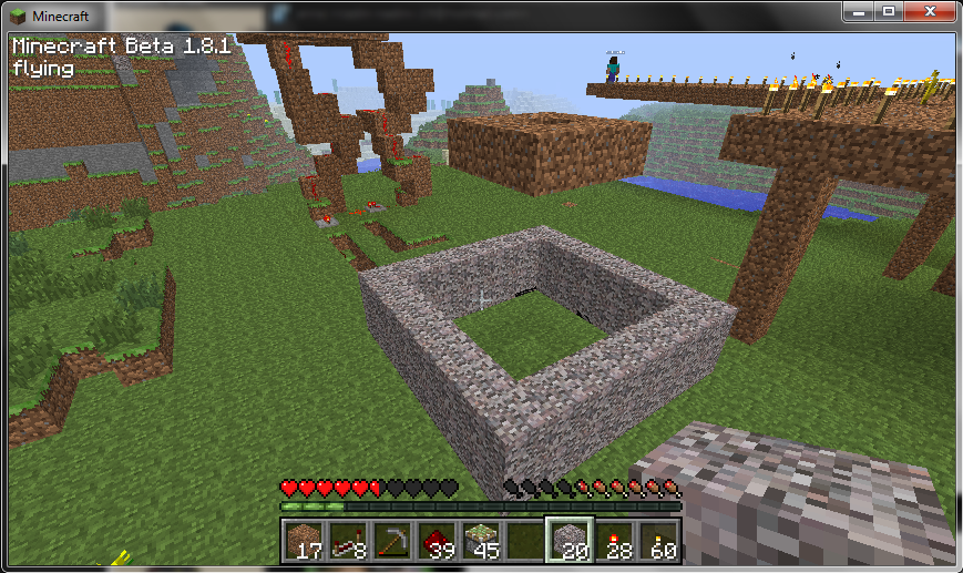 Az 5*5-ös terület láva+víz kombóból alkotott kővel lesz leburkolva, remélem azt nem tudja tönkretenni a TNT. A fal ha gyakran sérül, akkor kicsit felnagyítom 7*7-esre mondjuk