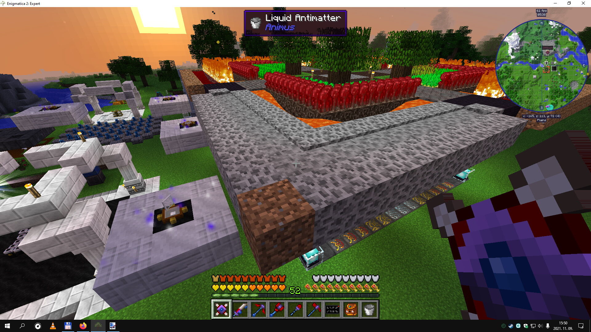 Ahogy a képen látszik a blood essence-ből valahogy antimatter lett, és fogalmam sincs hogyan. Nem tudtam hogy ez egy baromi veszélyes cucc, mert amihez közvetlenül hozzáér, antimatter block lesz belőle, tehát tönkretesz mindent. Ha kiütsz egy antimatter blockot, az összes hozzá kapcsolódó antimatter block eltűnik. Még szerencse hogy pont pár perccel előtte backupolt a játékom, mielőtt a hülye fejemmel felelőtlenül kiütöttem az egyik blokkot. Szétfolyt, tönkretett egy csomó mindent odalent. Mikor megnyugodtam hogy van backup, kíváncsiságból kiütöttem még egy blokkot és akkor szépen elkezdett pusztítani lefelé, konkrétan egy nagy lyuk lett ami egyenesen a voidba vezetett, mivel még a bedrockot is kiszedte odalent