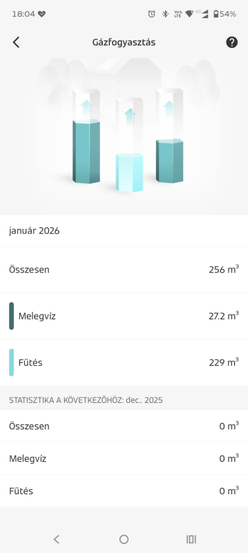 2025 december: 85 -> 2026 január: 124Kapok majd olyan 4100 körüli elengedést, ha benne van az alapdíj is, ha pedig nincs benne, akkor kb 3800-at... Egyébként az első sor azért lehet kiugró, mert akkor még nem tapasztaltuk ki sem a házat, sem a saját hőérzetünket, de ez csak tipp. Látható, hogy 2 hét kemény téli fagyot sem érzett meg a ház, és ha egy egész hónapig tartott volna, csak akkor ment volna föl 140-170 közé valahová.