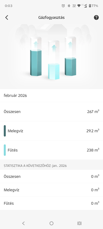 De hajszálra 9 m3 gáz fogyott. 😕Most a kapcsolási érzékenységet 0,2-ről 0,3-ra tettem.
